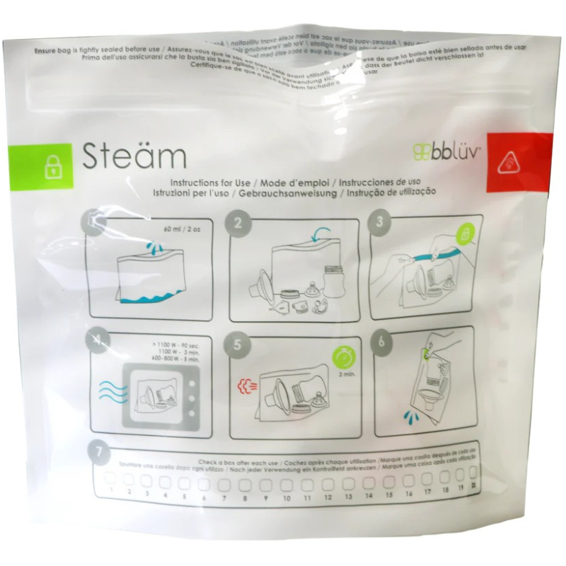 Το Steam κάνει την αποστείρωση απλή, γρήγορη και απόλυτα πρακτική. Είτε θέλετε να αποστειρώσετε μπιμπερό, θηλές, πιπίλες, εξαρτήματα θηλάστρου ή άλλα αξεσουάρ της bbluv, οι σακούλες αποστείρωσης μικροκυμάτων Quick-Steam εξουδετερώνουν βακτήρια και μικρόβια σε λίγα μόλις λεπτά!