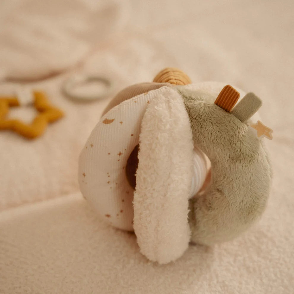 Αυτή η υφασμάτινη μπάλα είναι η ιδανική πρώτη επιλογή για τα νεογέννητα που αρχίζουν να εξερευνούν τον κόσμο γύρω τους. Απαλή, ασφαλής και με παιχνιδιάρικο σχήμα, προσφέρει ώρες διασκέδασης ενώ ενισχύει τις πρώτες κινητικές δεξιότητες.