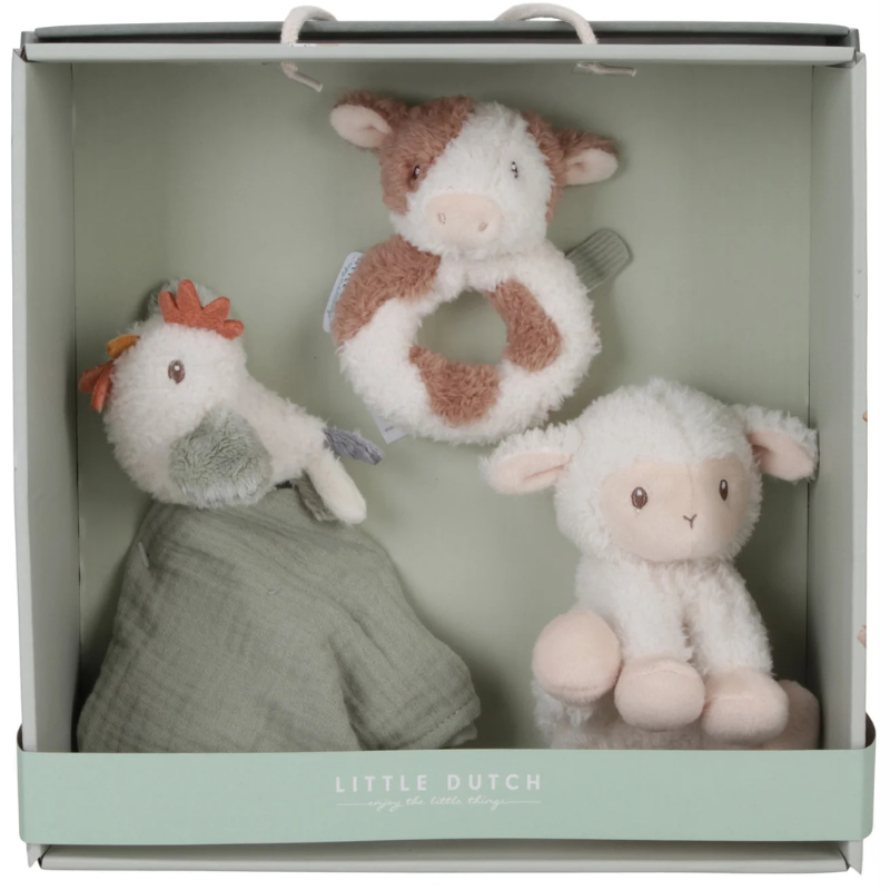 Ένα υπέροχο κουτί δώρου που περιλαμβάνει τρία μαλακά παιχνίδια από τη συλλογή Little Farm, ιδανικά για ατελείωτες αγκαλιές και παιχνίδι.