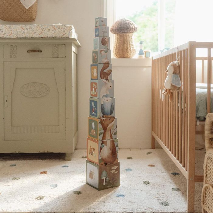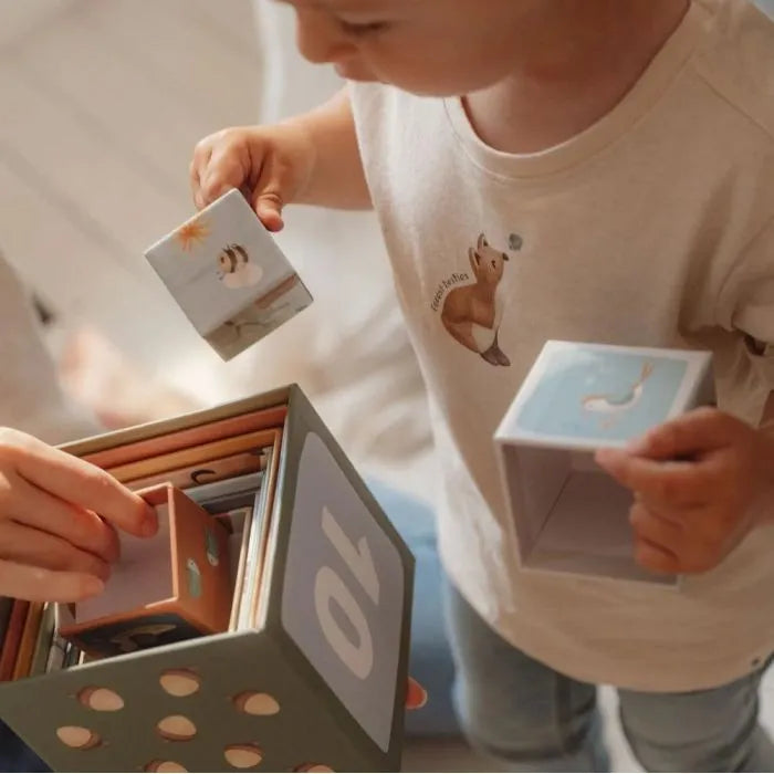 Το χαρούμενο σετ περιλαμβάνει 6 εικονογραφημένους χάρτινους κύβους και ξύλινα οχήματα, δίνοντας στα παιδιά τη δυνατότητα να χτίζουν, να στοιβάζουν και να πειραματίζονται δημιουργικά.