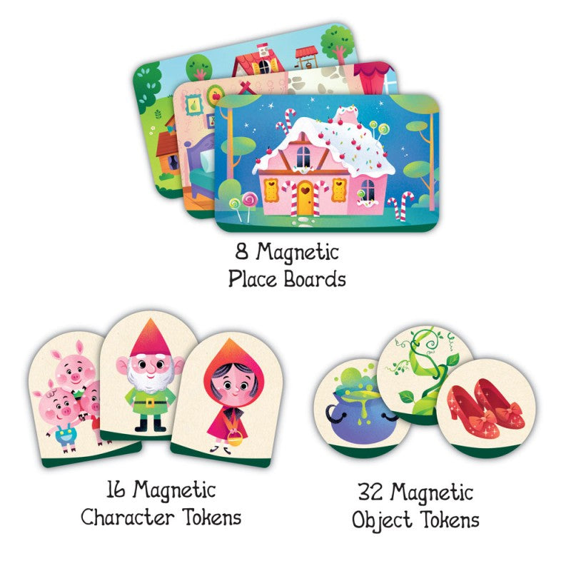 Με 8 τοποθεσίες, 16 χαρακτήρες και 32 αντικείμενα σε μαγνητικά στοιχεία, τα παιδιά μπορούν να δημιουργούν αμέτρητες ιστορίες με εναλλακτικά φινάλε – κάθε φορά και μια νέα περιπέτεια!