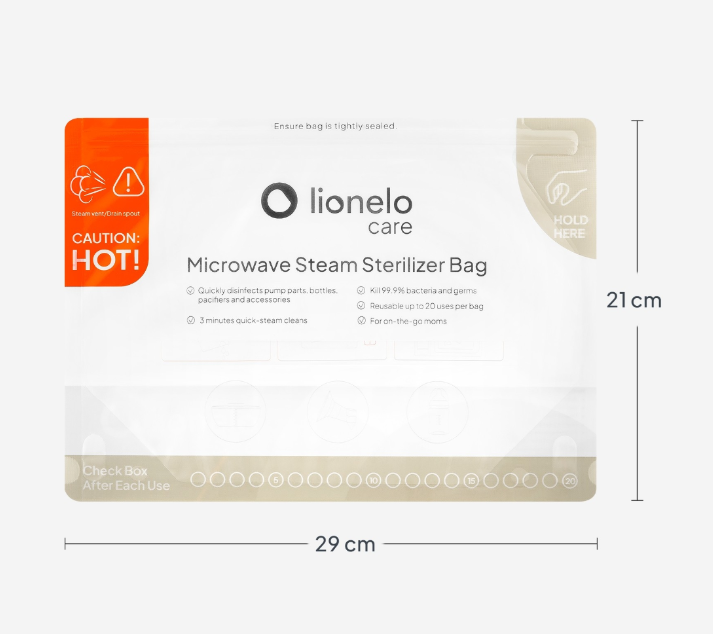 Με τα Lionelo Thermbag χρειάζονται μόνο λίγα λεπτά στον φούρνο μικροκυμάτων για πλήρη αποστείρωση, εξοικονομώντας χρόνο, χώρο και κόπο στην καθημερινή φροντίδα του μωρού.