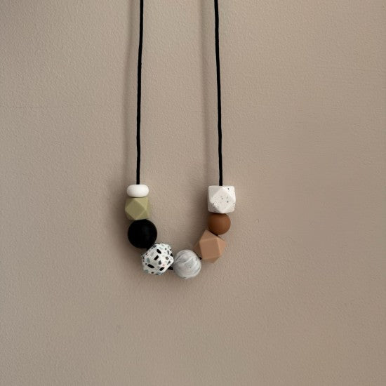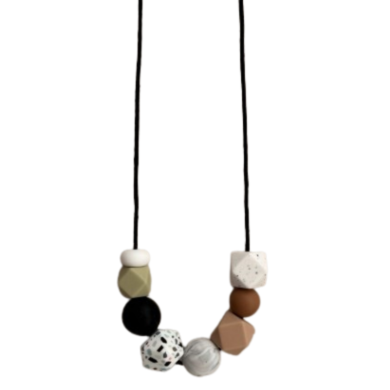 Τα μασητικά κολιέ προτείνονται για συγκέντρωση την ώρα του θηλασμού και για διασκέδαση όταν κάνουμε αγκαλιές και babywearing.