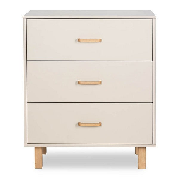 Διαθέτει τρία ευρύχωρα συρτάρια με μηχανισμό απαλού κλεισίματος, προσφέροντας άνεση και ασφάλεια στην καθημερινή χρήση. Οι ξύλινες λαβές από οξιά προσδίδουν φυσική αισθητική, ενώ τα ψηλά πόδια διευκολύνουν τον καθαρισμό κάτω από το έπιπλο, κάνοντας τη συντήρηση απλή και πρακτική.