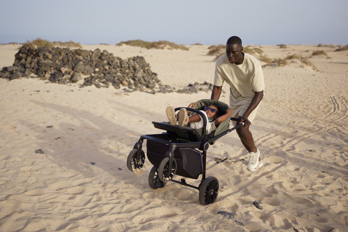 Οι ευέλικτοι τροχοί τύπου all-terrain, με διάμετρο 20 και 27 cm, είναι κατάλληλοι για κάθε είδους επιφάνεια. Το καρότσι βόλτας είναι επίσης εξοπλισμένο με άνετη ανάρτηση εμπρός-πίσω, που κάνει την υπέρβαση των ανωμαλιών του δρόμου ανεπαίσθητη τόσο για το παιδί όσο και για τον γονέα.