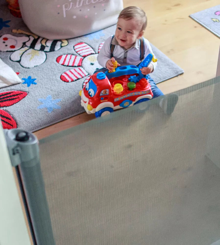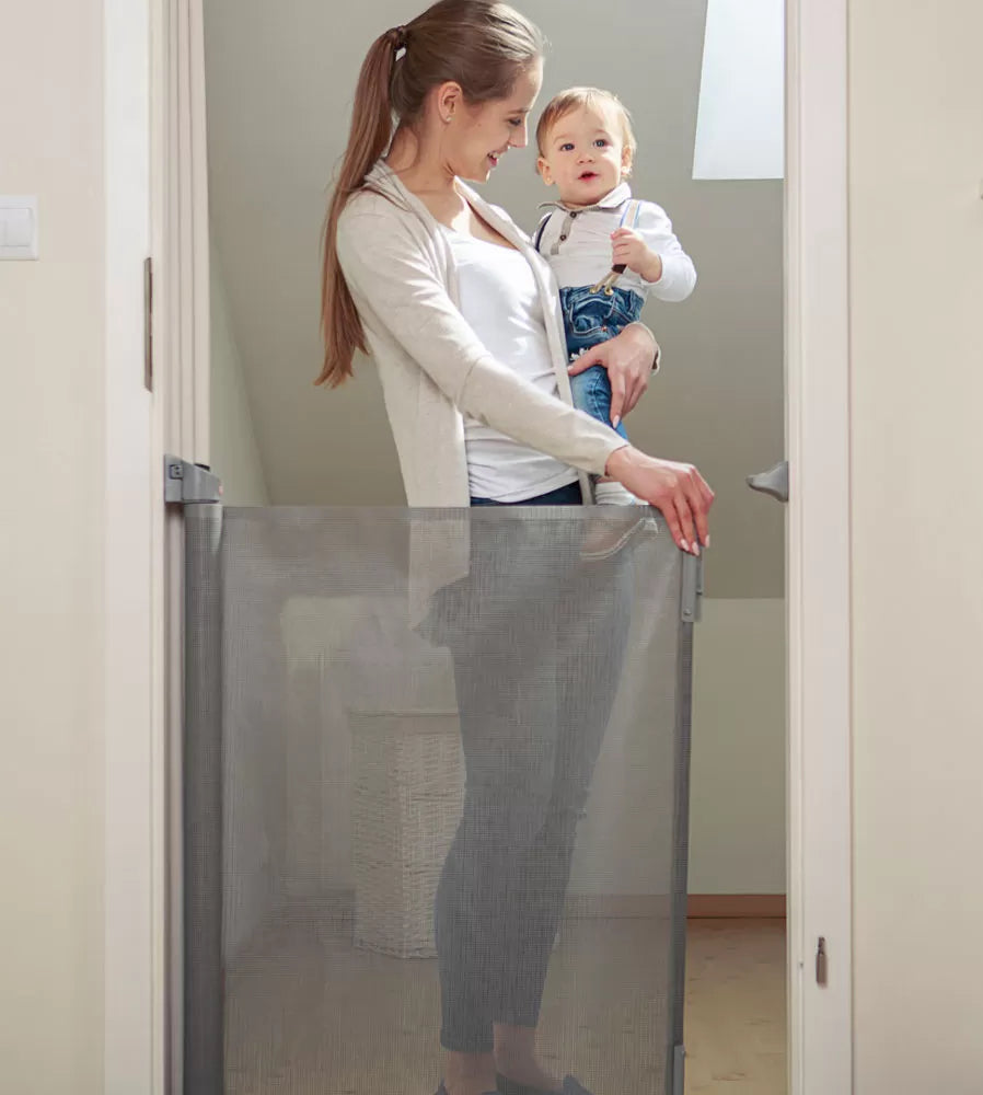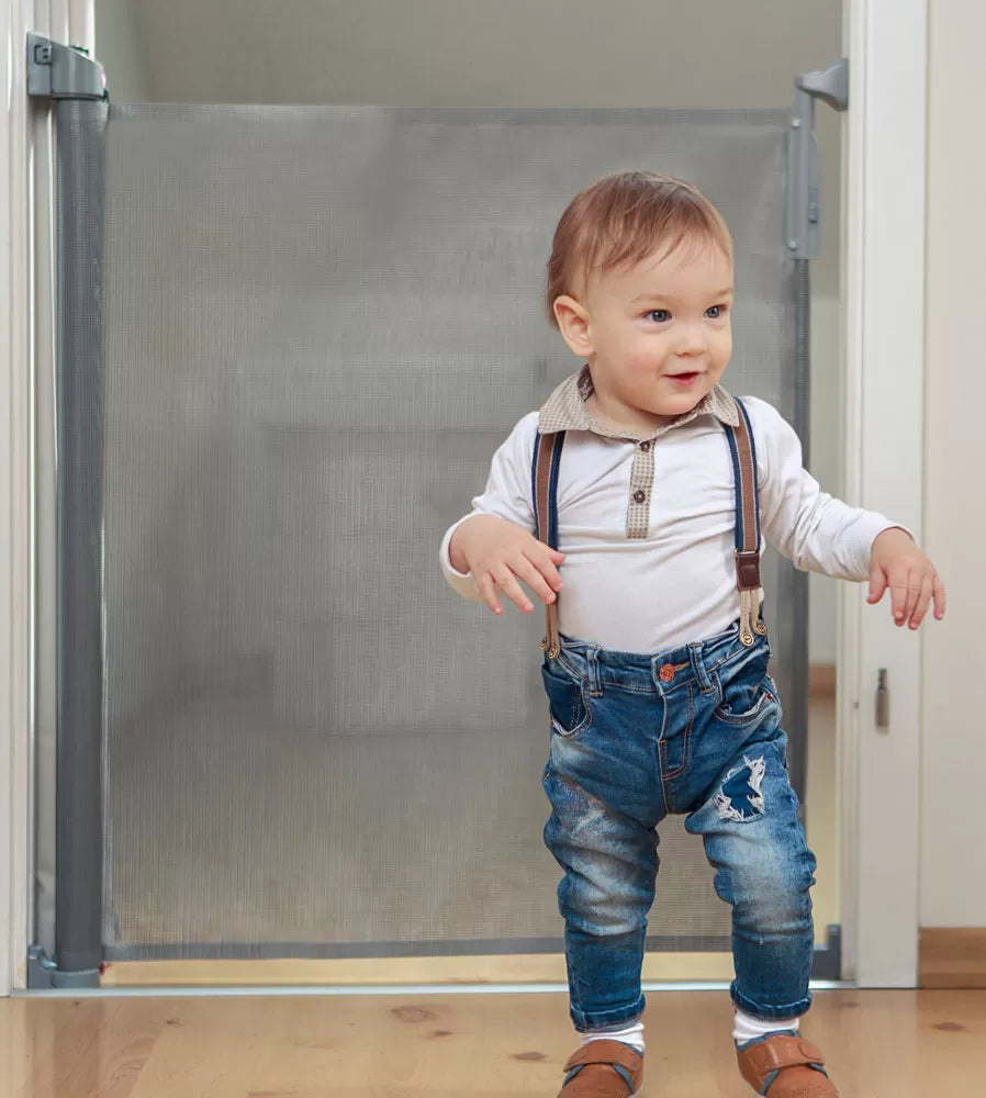 Η λειτουργία αναδίπλωσης δεν απαιτεί πολύ χώρο εάν δεν είναι απαραίτητη. Κατασκευασμένο από πολύ σταθερό, άκαμπτο συνθετικό υλικό που δεν τεντώνεται. Σας εμποδίζει να τραυματίσετε, να πιάσετε τα δάχτυλά σας ή να αναρριχηθείτε. Εξαλείφει τον κίνδυνο ενός παιδιού να βλάπτει τον εαυτό του χτυπώντας ένα κιγκλίδωμα. Ο κομψός σχεδιασμός το καθιστά κατάλληλο τόσο για κλασσικούς όσο και για σύγχρονους εσωτερικούς χώρους.
