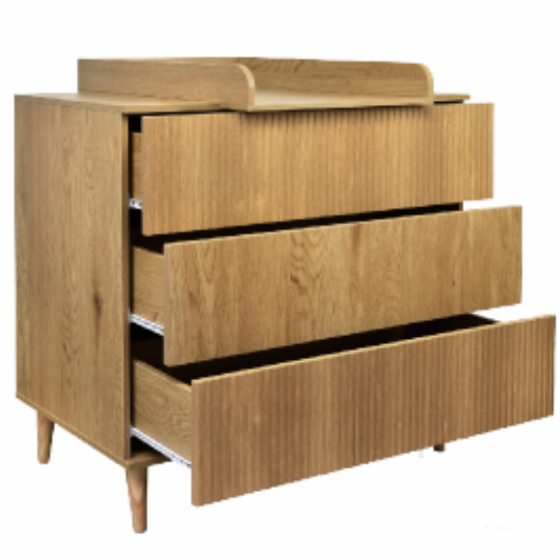 Τα τρία συρτάρια χωρίς λαβές ανοίγουν ομαλά , προσφέροντας άφθονο χώρο αποθήκευσης για όλα τα απαραίτητα είδη φροντίδας του παιδιού σας.