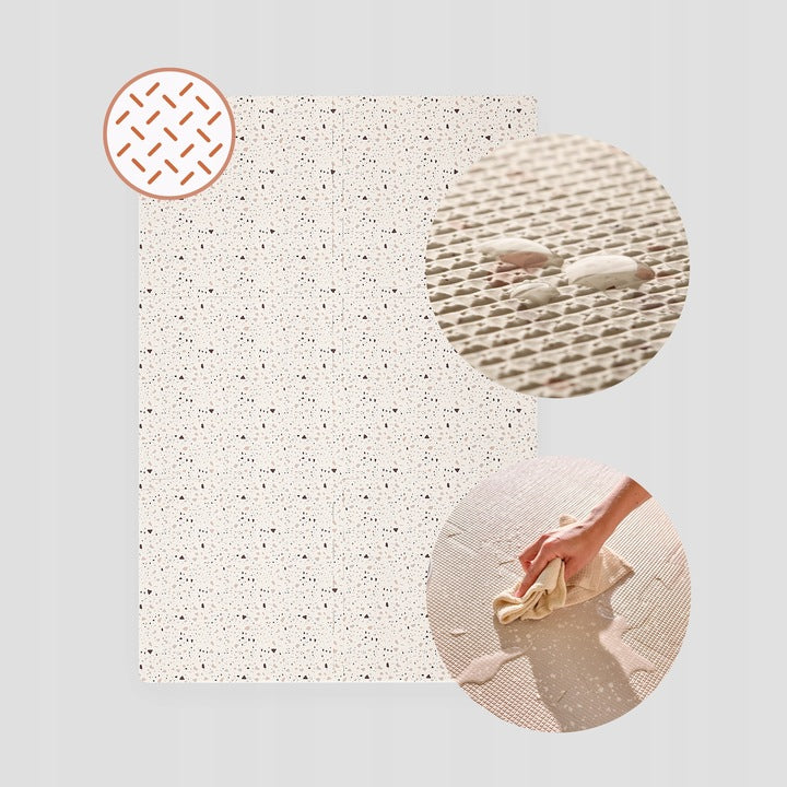 Με βέλτιστο πάχος 1,5 cm, το χαλάκι είναι αρκετά μαλακό ώστε να κάθονται άνετα και οι γονείς, δημιουργώντας έναν κοινό χώρο παιχνιδιού και δεσίματος.