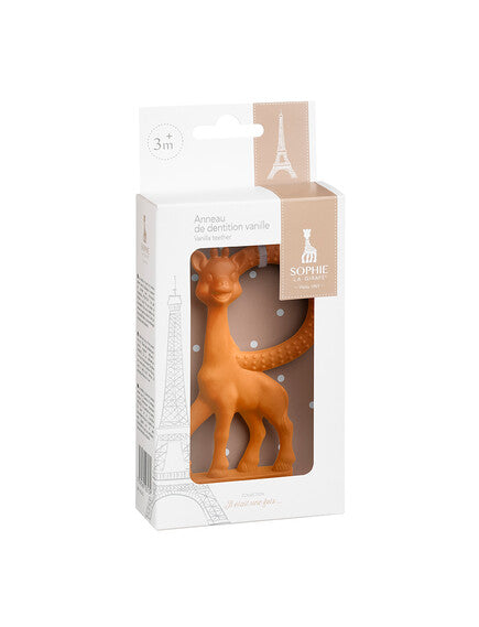 Ανακουφίστε το μωρό σας κατά την περίοδο της οδοντοφυΐας με τον δακτύλιο οδοντοφυΐας Sophie la girafe με άρωμα βανίλιας – έναν ιδανικό συνδυασμό άνεσης, ασφάλειας και αισθητηριακής εξερεύνησης.