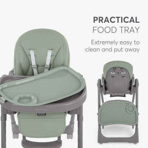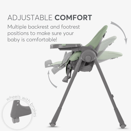 • Ευέλικτο & Υποστηρικτικό: Πλάτη με 5 θέσεις ανάκλησης, υποπόδιο με 3 θέσεις και ρυθμιζόμενο ύψος σε 8 επίπεδα, για σωστή στάση κατά το φαγητό καθώς το παιδί μεγαλώνει.