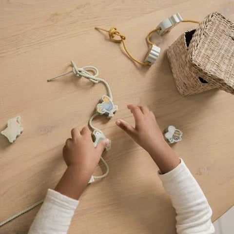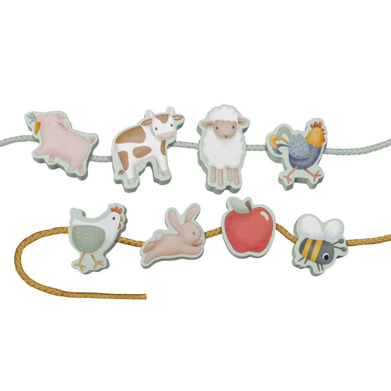 Βοήθησε το προβατάκι να βρει το σπιτάκι της φάρμας ή να συναντήσει τους φίλους του, περνώντας μία-μία τις ξύλινες χάντρες στο κορδόνι.