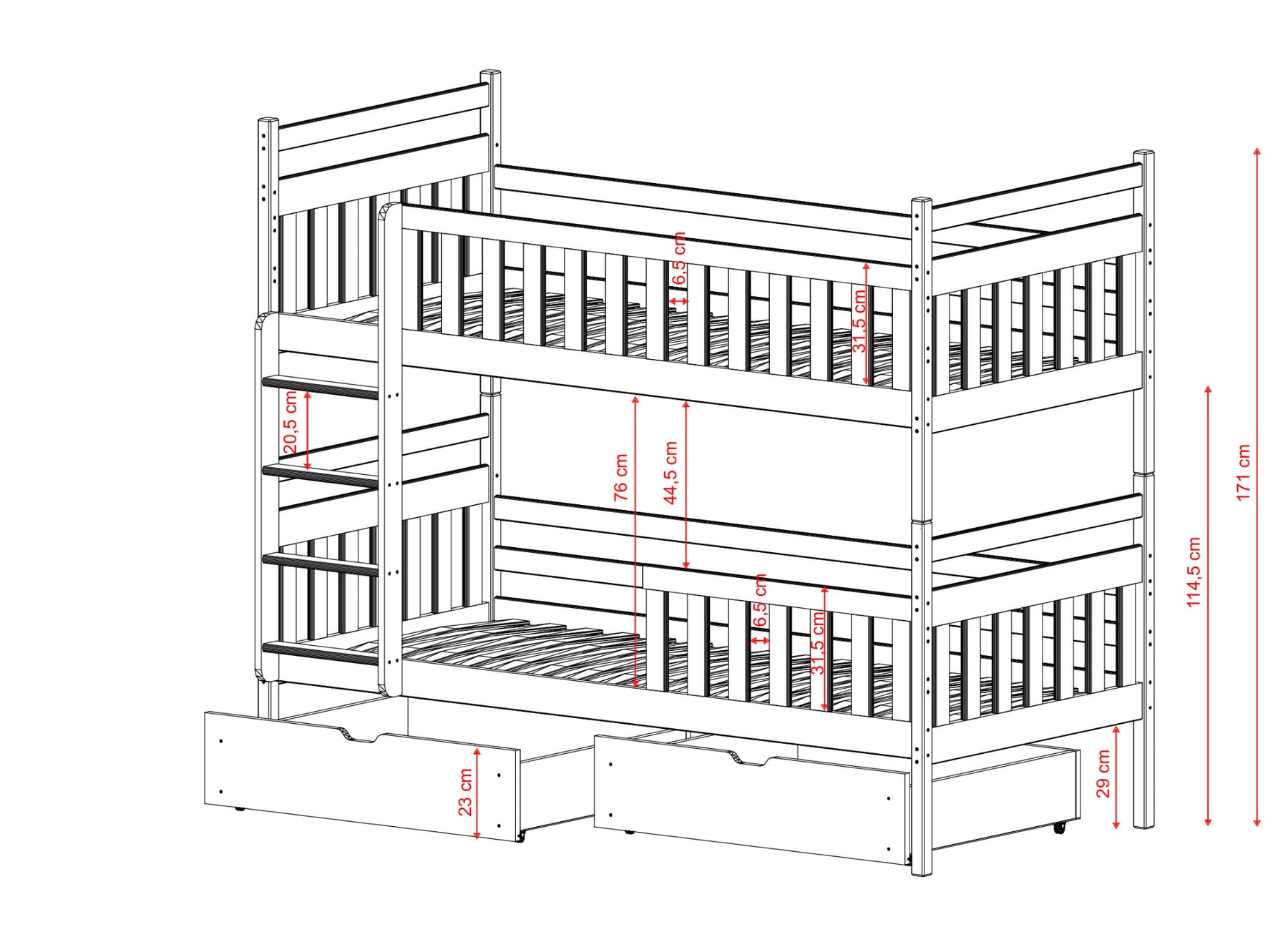 Διαστάσεις Στρώματος (Κάτω κρεβάτι): 80x160 cm