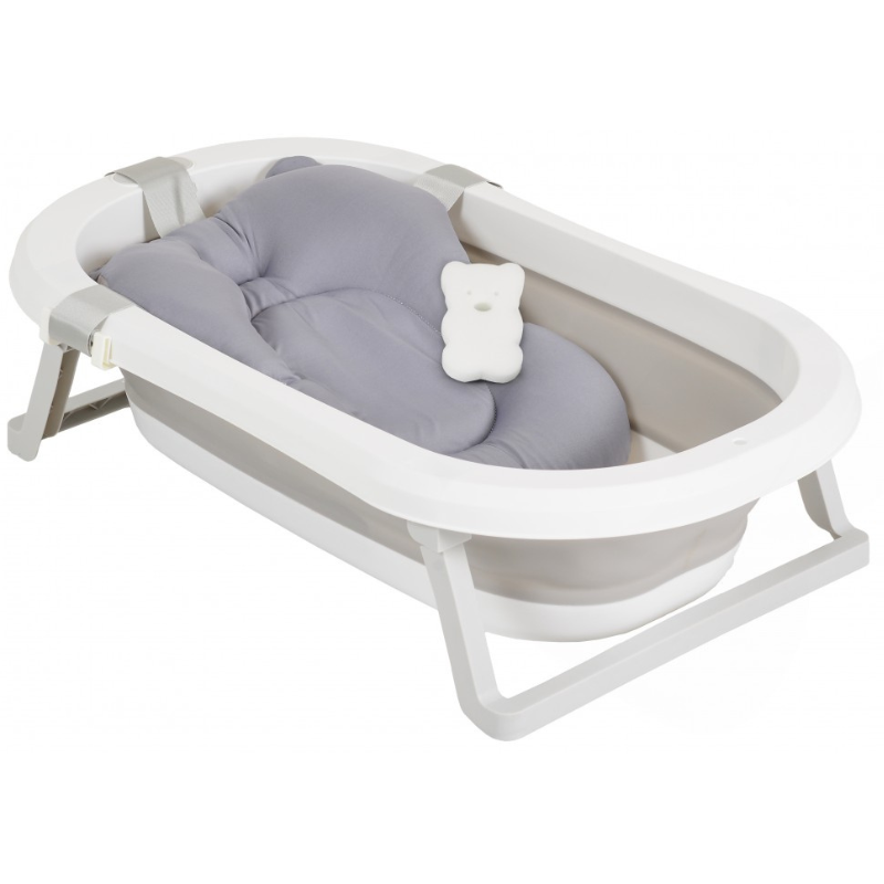Περιλαμβάνει πτυσσόμενη μπανιέρα, μαλακό μαξιλάρι μπάνιου και σφουγγάρι, ώστε το μπάνιο να γίνεται μια ευχάριστη και χαλαρωτική εμπειρία τόσο για το μωρό όσο και για τον γονέα.