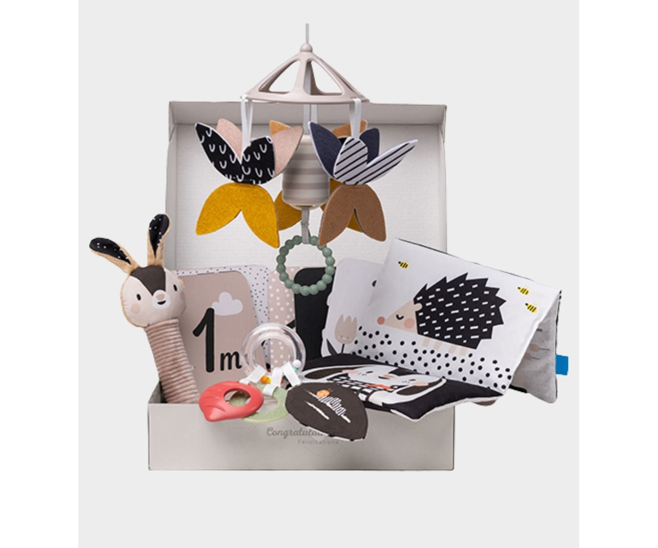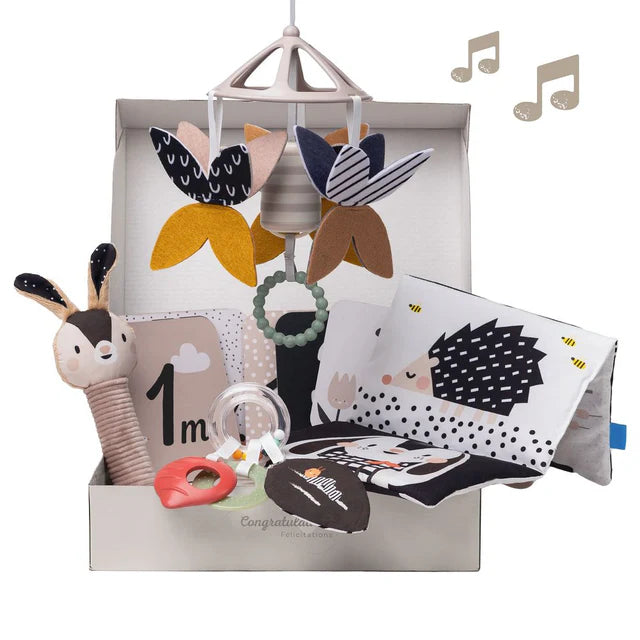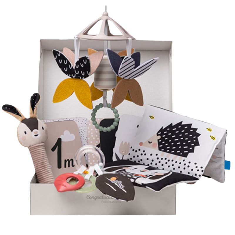 Γνωρίστε στο μωρό σας τον κόσμο της ανακάλυψης με το Black & White Kit, ένα ολοκληρωμένο σετ 10 αναπτυξιακών παιχνιδιών, ειδικά σχεδιασμένο για τους πρώτους μήνες ζωής. Ο ασπρόμαυρος χρωματικός συνδυασμός βοηθά τα νεογέννητα να εστιάζουν πιο εύκολα, ενισχύοντας τη συγκέντρωση και την οπτική τους ανάπτυξη.