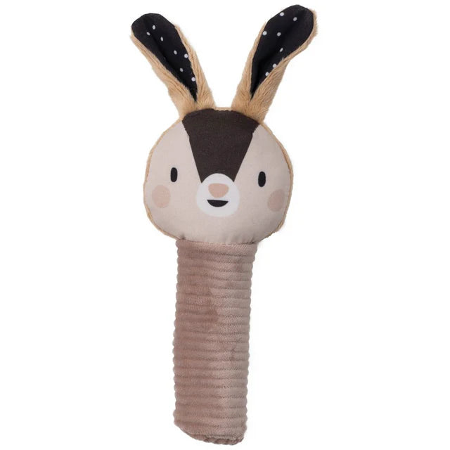 Το σετ υποστηρίζει το παιχνίδι από την ώρα της κοιλίτσας (tummy time) έως και τα πρώτα αναπτυξιακά ορόσημα. Περιλαμβάνει μαλακό βιβλιαράκι με ήχο για απασχόληση στην κοιλίτσα, κρεμαστό παιχνίδι με πεταλούδες και κουδουνάκι για ήπια ακουστικά ερεθίσματα, κουδουνίστρα κρίκο για την ανάπτυξη της λεπτής κινητικότητας, καθώς και λούτρινο κουνελάκι με ήχο που βοηθά το μωρό να κατανοήσει τη σχέση αιτίας–αποτελέσματος.