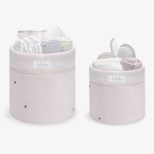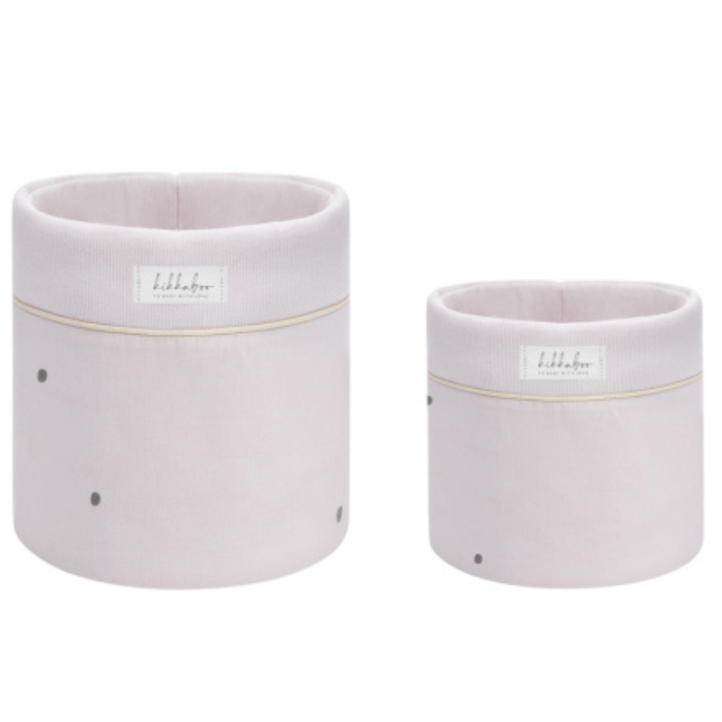 Ο κομψός σχεδιασμός με χαρούμενα μοτίβα και ήπιους χρωματισμούς ταιριάζει απόλυτα σε κάθε παιδικό ή βρεφικό δωμάτιο, δημιουργώντας ένα ήρεμο και φιλόξενο περιβάλλον. Το σετ περιλαμβάνει δύο καλάθια διαφορετικού μεγέθους, προσφέροντας ευελιξία στην αποθήκευση και προσαρμογή στις ανάγκες του χώρου σας.