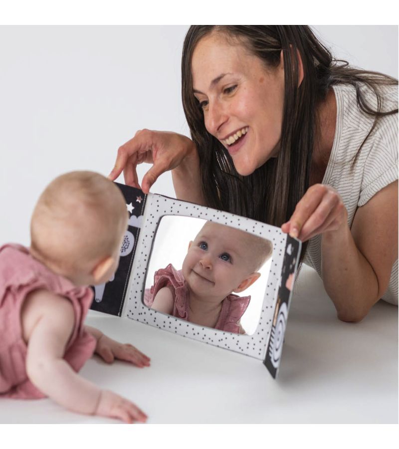 Το ιδανικό πρώτο βιβλίο για το μωρό σας, σχεδιασμένο για να υποστηρίζει την ανάπτυξη των αισθήσεων από τις πρώτες κιόλας ημέρες. Διαθέτει μεγάλο, ασφαλή καθρέφτη XL, εικόνες υψηλής αντίθεσης για νεογέννητα, πολύχρωμες εικονογραφήσεις και παιχνίδι εμφάνισης–απόκρυψης που ενισχύει τη συναισθηματική και γνωστική ανάπτυξη.