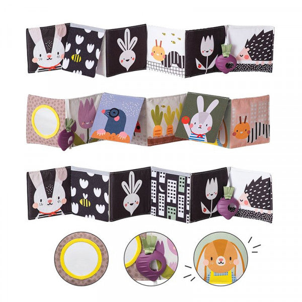 Ένα μοναδικό μαλακό βιβλίο διπλής όψης από τη συλλογή Urban Garden, σχεδιασμένο για 2 στάδια ανάπτυξης του μωρού σας. Περιλαμβάνει 2 πάνελ αλλαγής εικόνας που ενισχύουν το παιχνίδι της εμφάνισης και απόκρυψης και κρατούν το ενδιαφέρον του μωρού ζωντανό.